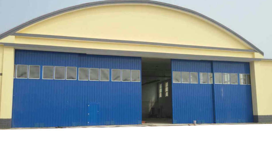 1、有效地空间节省设计:特大机库门也可以采取垂直上升的开启方式,完全开启后门板会隐藏在洞口上方或者墙体后面。
