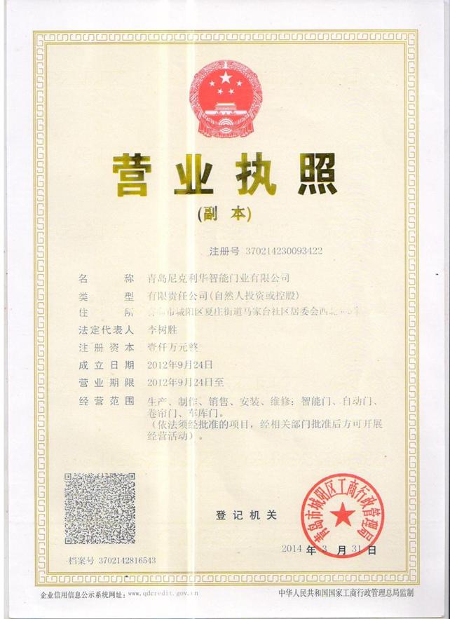 青岛尼克利华智能门业有限公司