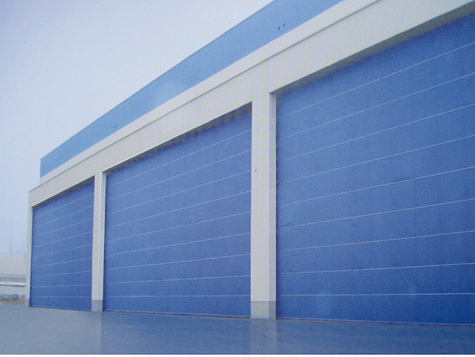 采用本公司这类型大门的传统技术:分片门帘平行横向双层堆积式